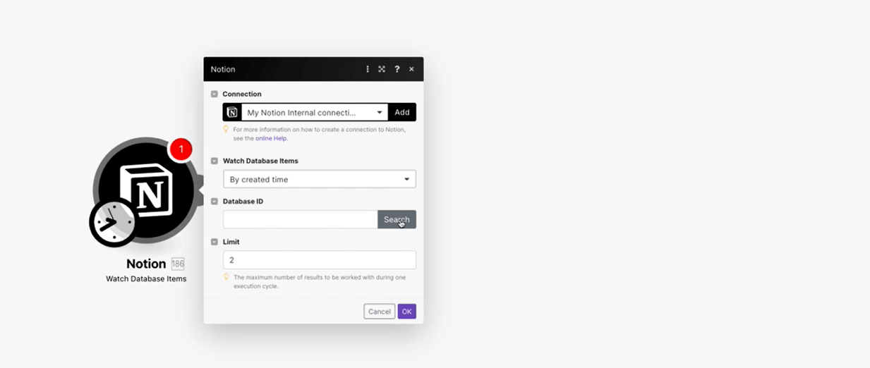 使用Make中的 Notion 模块,您可以监视、检索、创建、追加和更新数据库、数据库项、页面、页面内容、搜索对象、列出用户以及进行 API 调用。