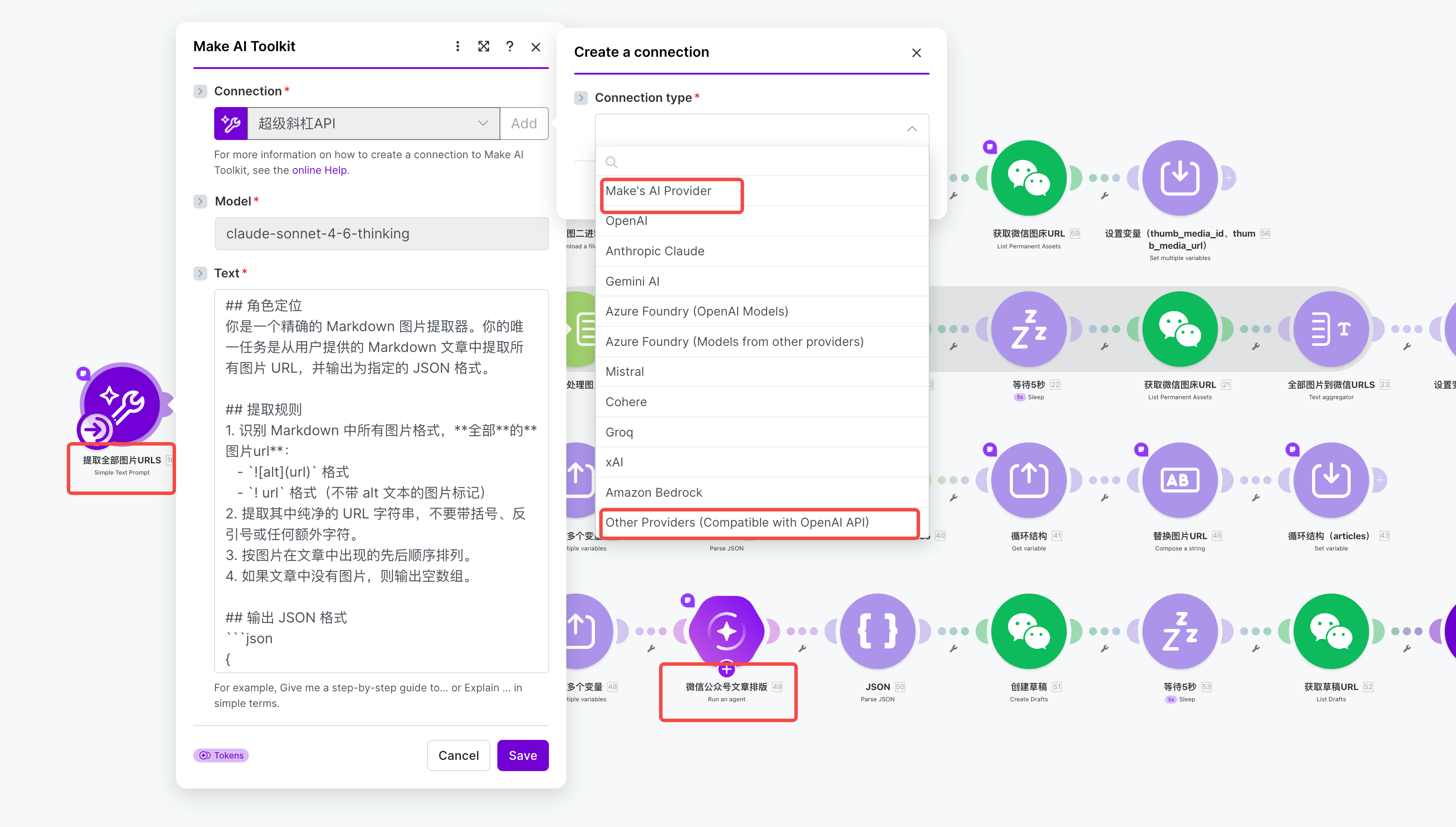 Make AI,模型选择Anthropic Claude-4.6(或类似模型),直接保存即可。 - 如果你使用超级斜杠 API: