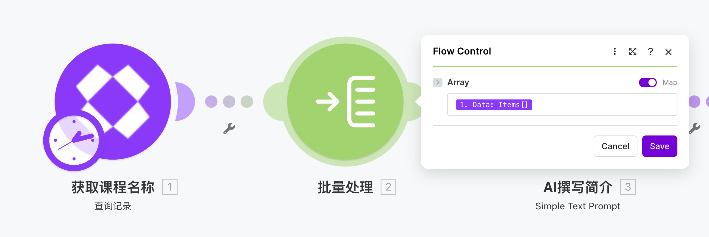 - AI 处理生成 (AI):把每一个课程的名称加上一段提示词给到 AI,让 AI 自动去进行处理。